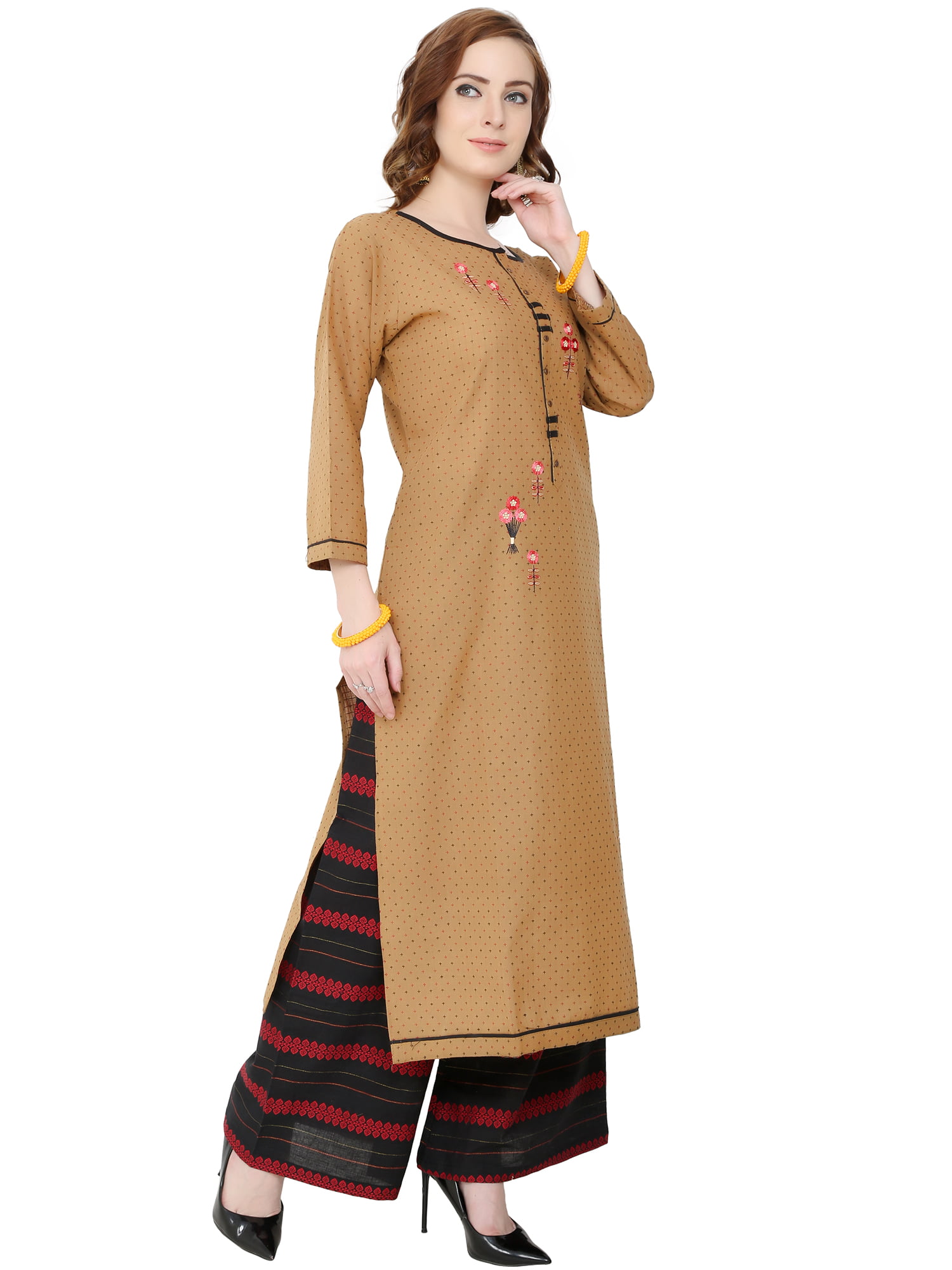 Brown Suit with Palazzo and Embroidered Dupatta