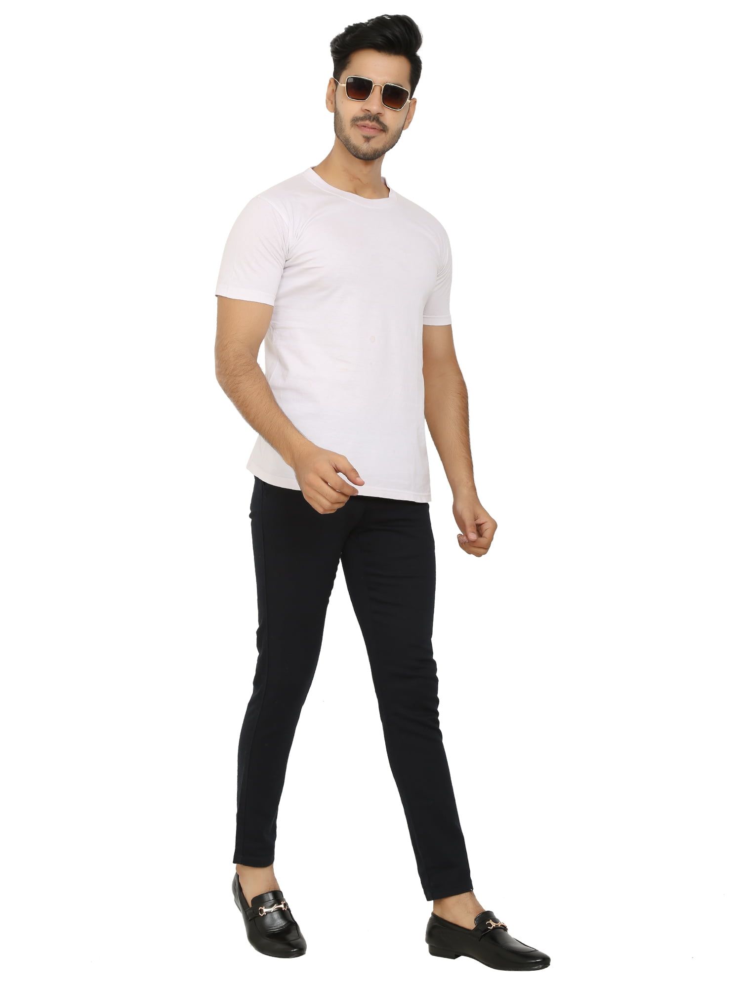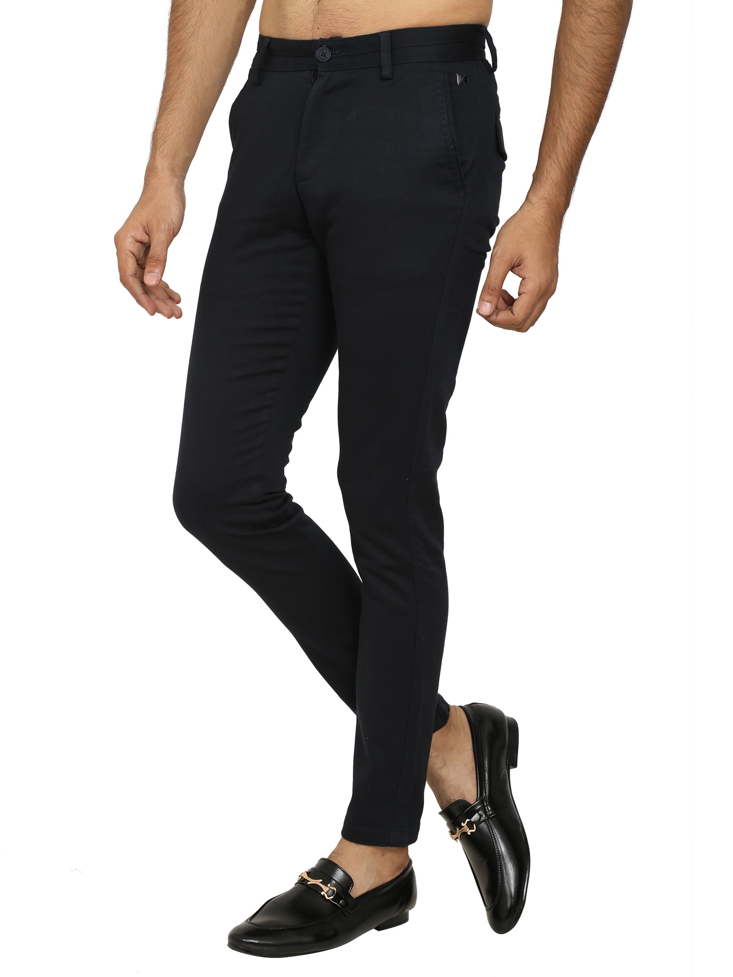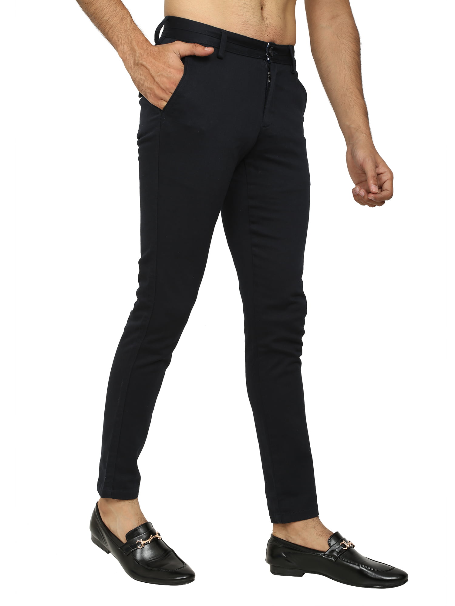 Men’s Dark Blue Slim Fit Solid Chinos / Trousers / Pants